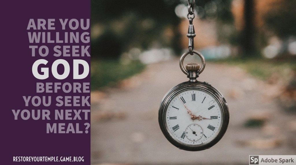 If we can’t learn to accept the delay, we just may miss out on an even bigger blessing than we could ever even think to ask for. So, how about you? Are you willing to delay the gratification of food for a short time in exchange for healing from God? Are you willing to seek God before you seek your next meal? Are you willing to pursue a relationship with Christ as much as your pursue the latest and greatest diet? Are you willing to stay the course, even when it seems like you aren’t making any progress at all? More than likely, you ARE making progress, but the results you are looking for (i.e. the number on the scale coming down) is just delayed.